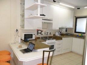 Copa-cozinha multifuncional, revestida em fórmica, com balcão p/ refeição e armários. Lavanderia grande e ensolarada, escritório com armários, wc empregada.