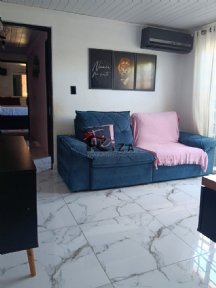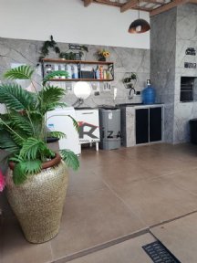 Diferenciais: piso em porcelanato polido, móveis planejados na cozinha e no dormitório do casal, ar-condicionado instalado na sala e no dormitório do casal, e sistema de cerca elétrica.